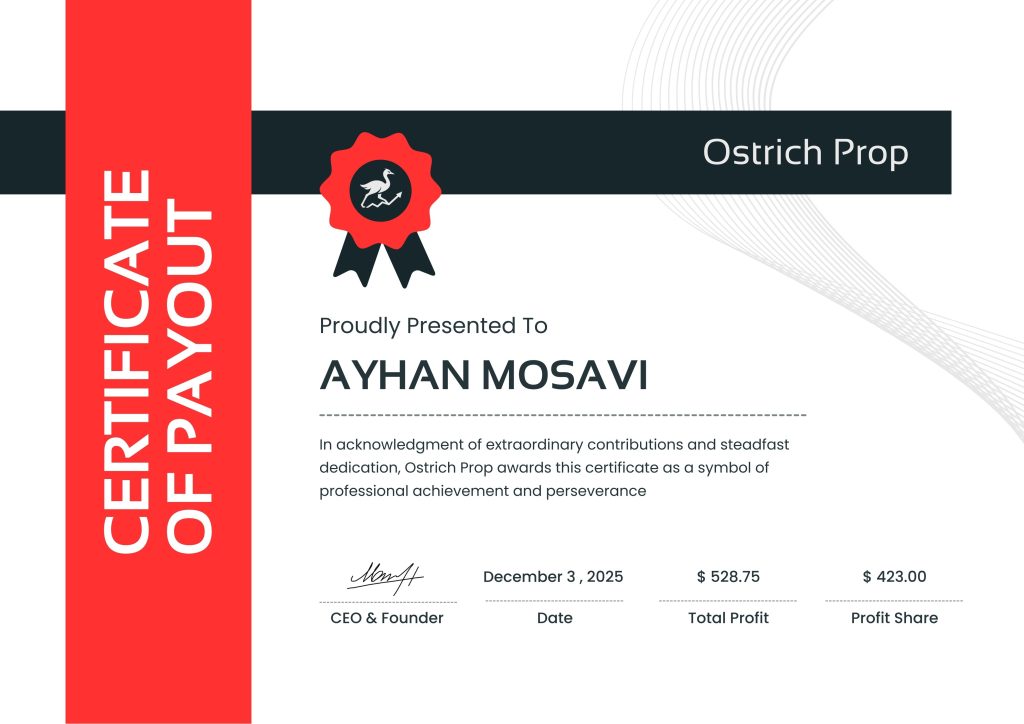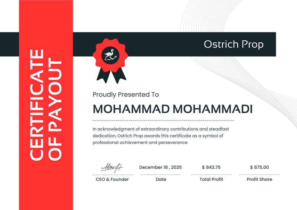 سرتیفیکیتهای درجشده در این بخش، تنها بخشی از برداشتهای سود کاربران اوستریچ پراپ هستند و صرفاً بهعنوان نمونه منتشر شدهاند. پرداختها و برداشتهای بیشتری بهطور مستمر در حال انجام و ثبت میباشند.